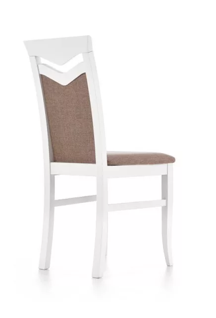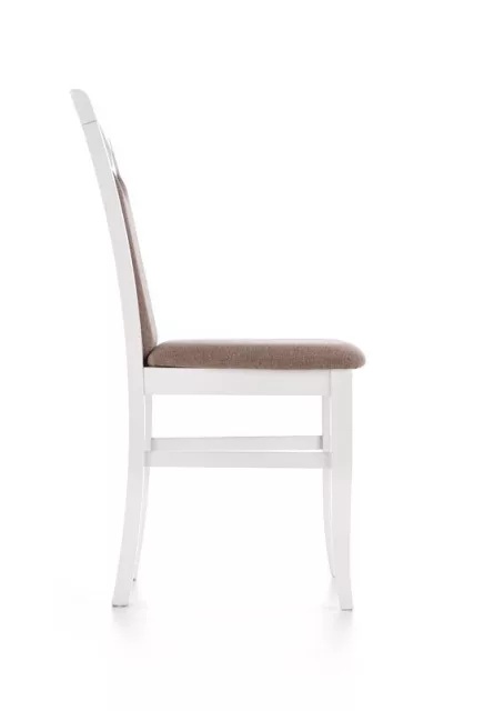 Elegáns, tömör bükkfából készült, klasszikus stílusú étkezőszék, kárpitozott ülő és hátlappal.
