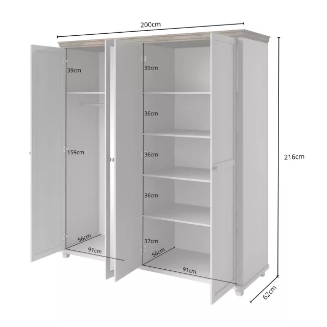 Evora 4 ajtós gardrób kőris fehér/lefkas tölgy színben
