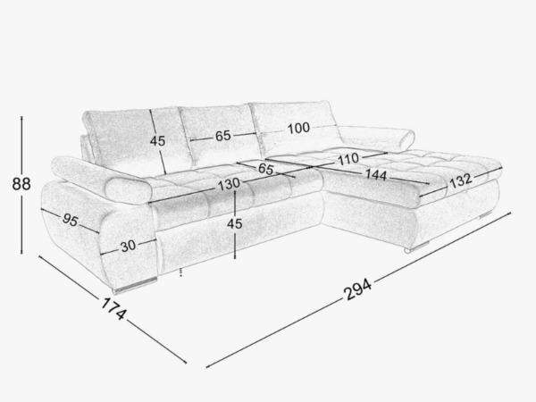 Mérete: 294 x 88 x 174 cm (szélesség, magasság, mélység)