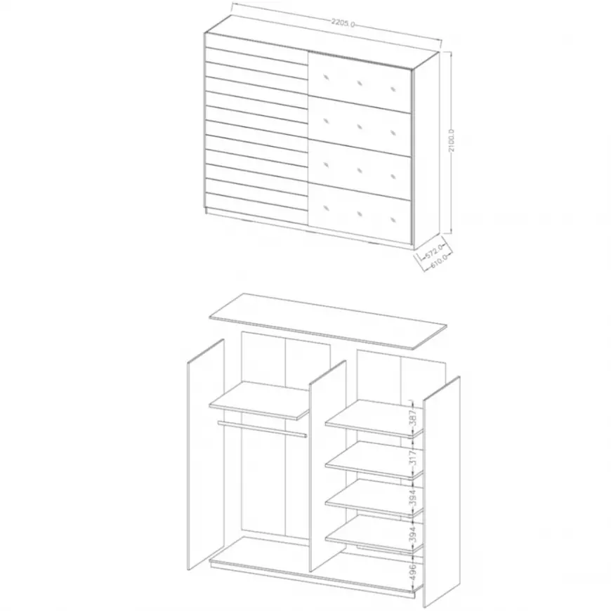Belső elrendezése fele polcos és fele akasztós, ezért rendkívül nagy tároló kapacitással rendelkezik.